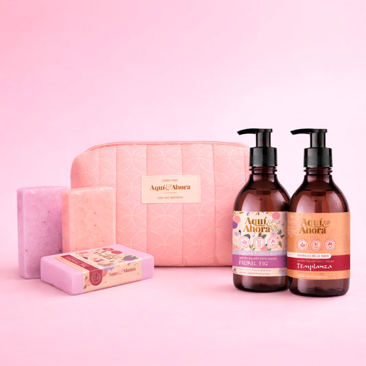 Set Neceser Estampado + Jabón Líquido + Jabón en Barra