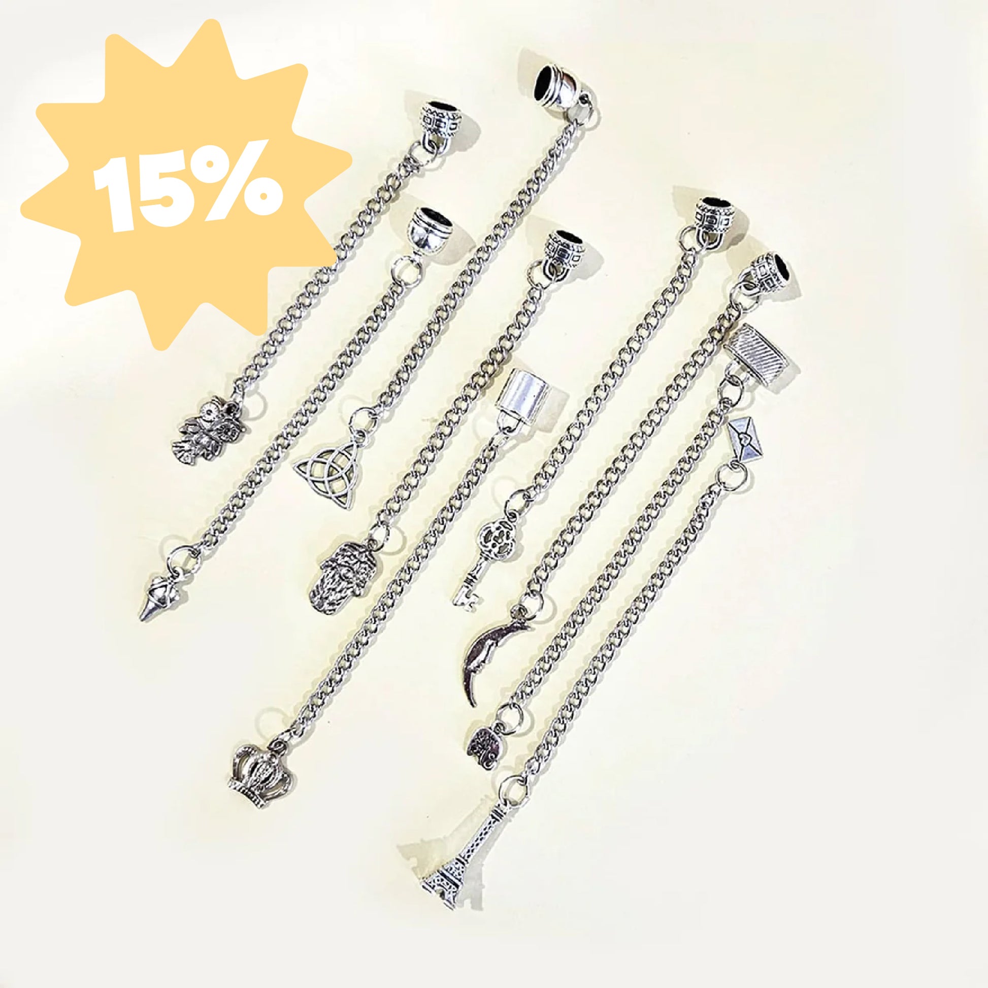 Las cadenas son de aprox 10 cm de largo y los capuchones miden aproximadamente 1cm a 1.3cm dependiendo del modelo. Vienen surtidos dependiendo la disponibilidad del modelo.