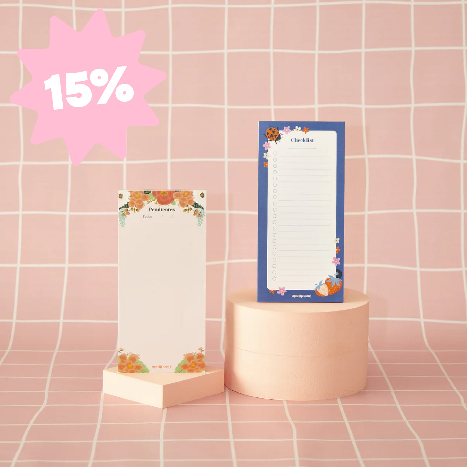 Volvieron los tan esperados Cheklist imantados para tu heladera o tu pizarra metálica. Con 50 hojas para llenarlas de notitas, recordatorios y pendientes. En base de cartón rígido. Y banda de imán al dorso