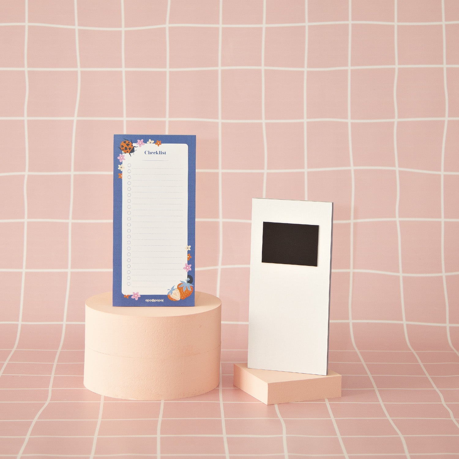 Volvieron los tan esperados Cheklist imantados para tu heladera o tu pizarra metálica. Con 50 hojas para llenarlas de notitas, recordatorios y pendientes. En base de cartón rígido. Y banda de imán al dorso