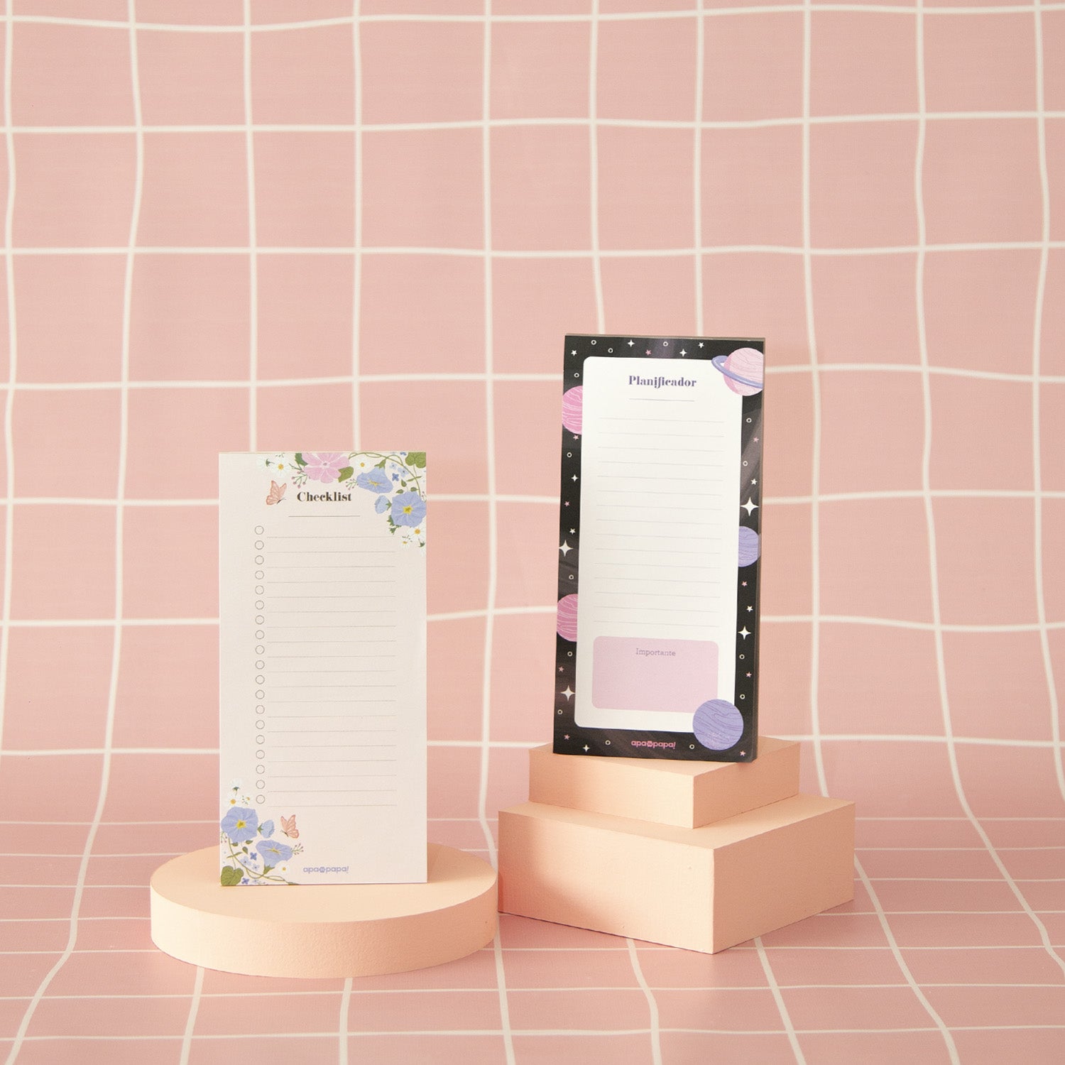 Volvieron los tan esperados Cheklist para complementar tu escritorio. Con 50 hojas para llenarlas de notitas, recordatorios y pendientes. En base de cartón rígido.