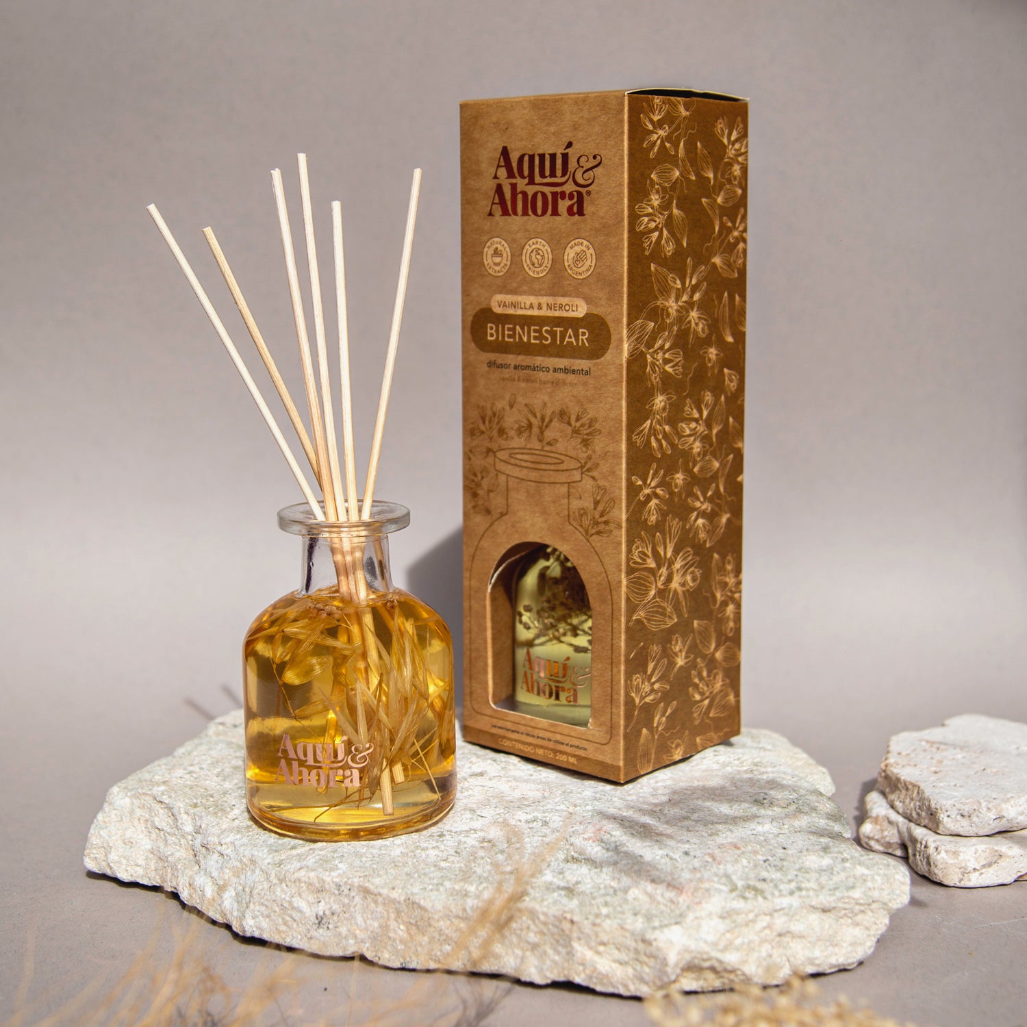 Linea de esencia Premium de Vanilla & Neroli con flores naturales en su interior.