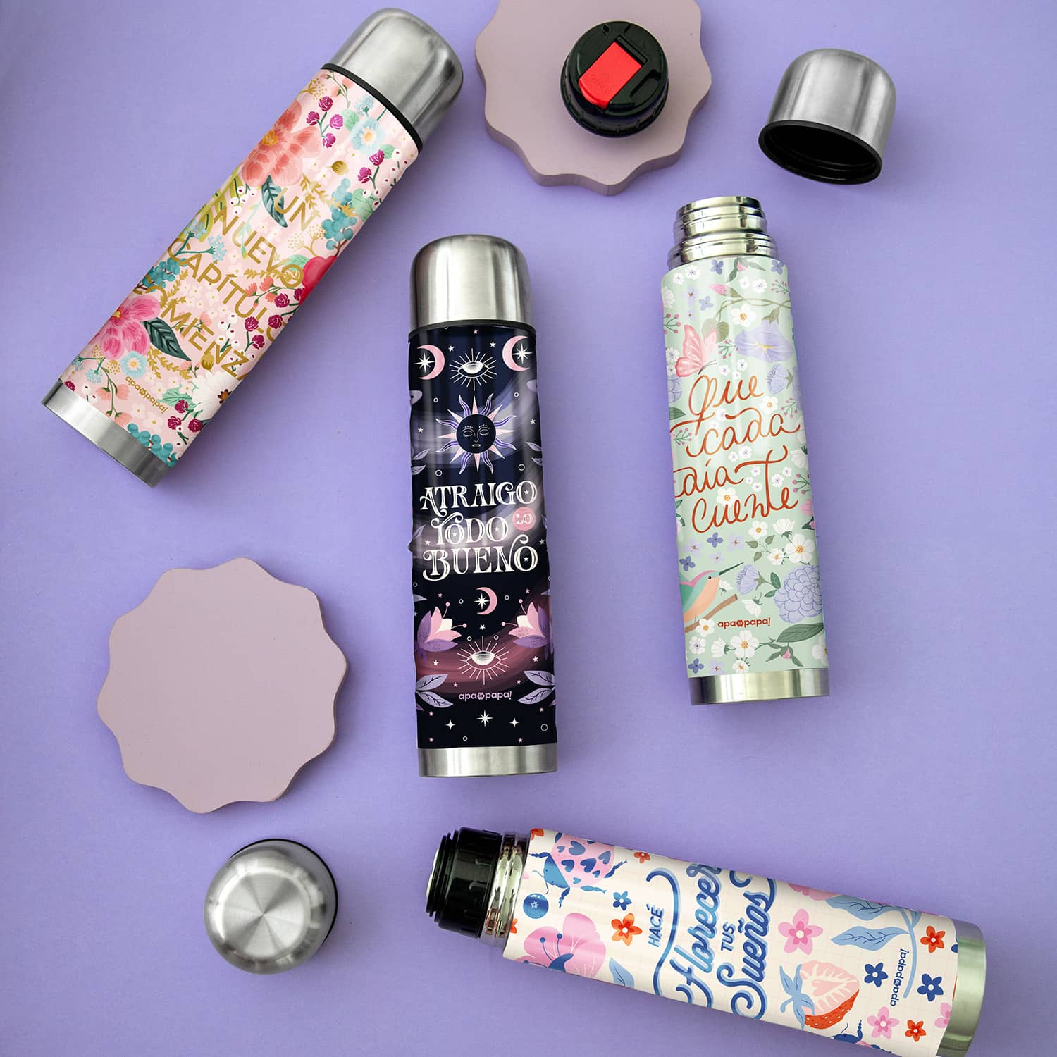 Vienen forrados en vinilo con distintos diseños para que hagan juego con nuestros yerberos y azucareros.